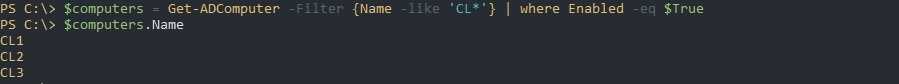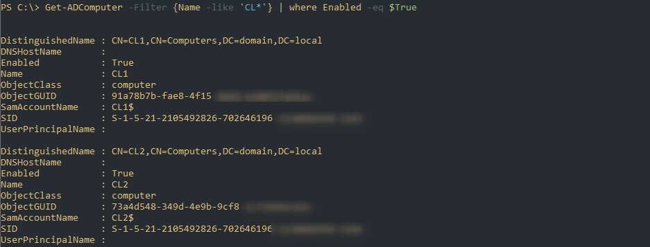 Можно использовать и фильтрацию. Так я верну компьютеры имена которые начинаются на «CL»: