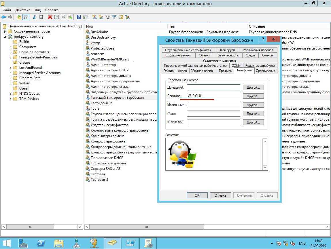 В результате выполнения, получим желаемый результат в свойствах пользователя: