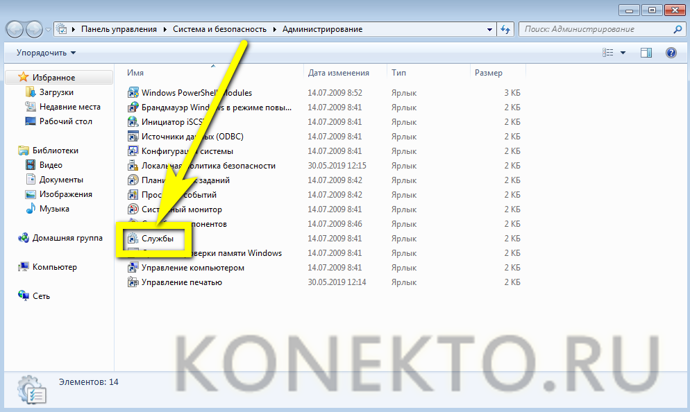 Запустить утилиту Виндовс 7 «Службы», воспользовавшись соответствующим ярлыком.