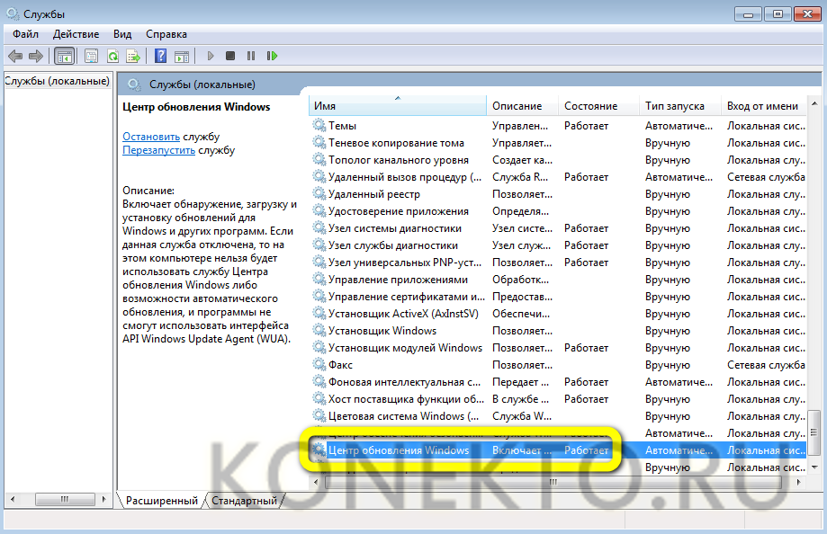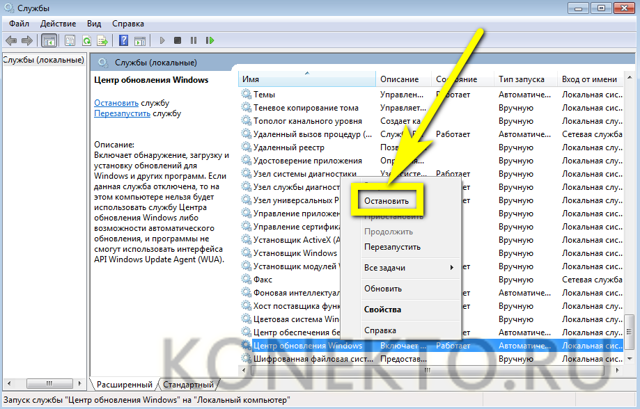 Иногда возникают случаи, когда предыдущий пункт не помогает. В таких случаях нужно полностью отключить центр обновлений.