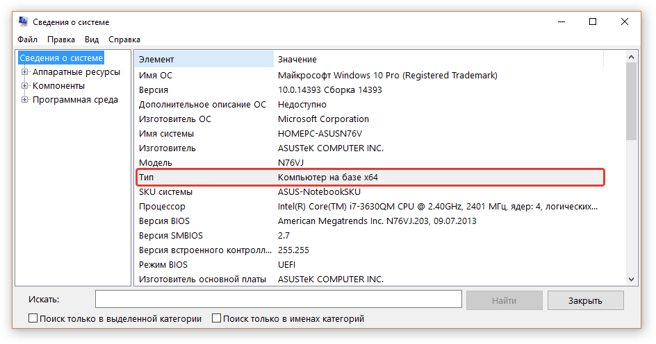 Откроется окно, где в строке «Тип» вы увидите либо «Компьютер на базе x64», либо «Компьютер на базе x86».