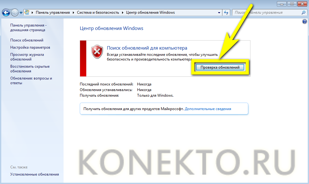 Основное решение. Установка исправления для Windows 7, решающего проблему с поиском обновлений