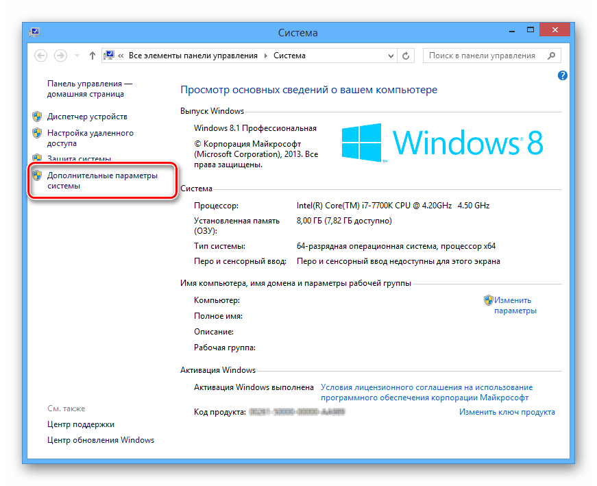 - На клавиатуре нажмите сочетание клавиш «Win+Pause», чтобы перейти к информации об установленной системе.