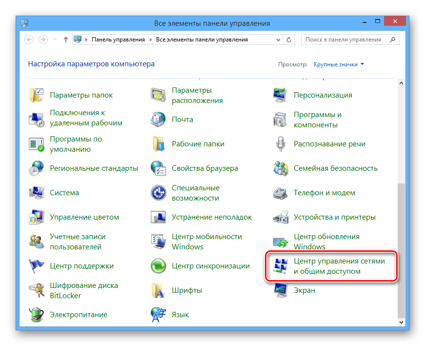 Здесь необходимо выбрать пункт «Центр управления сетями и общим доступом».