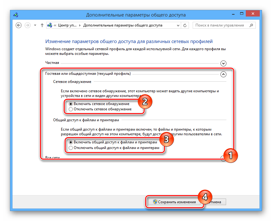 Нажмите кнопку «Сохранить изменения» и проверьте видимость ПК в сети.