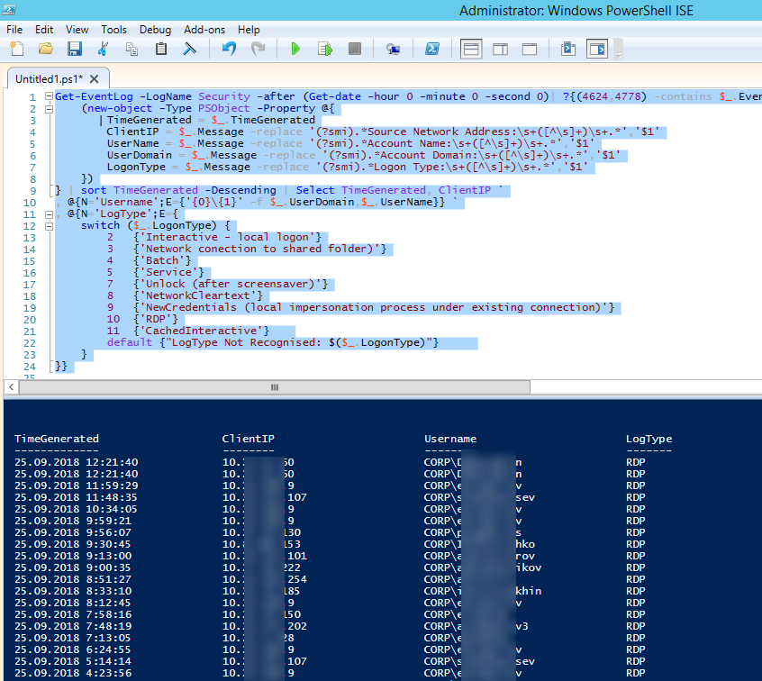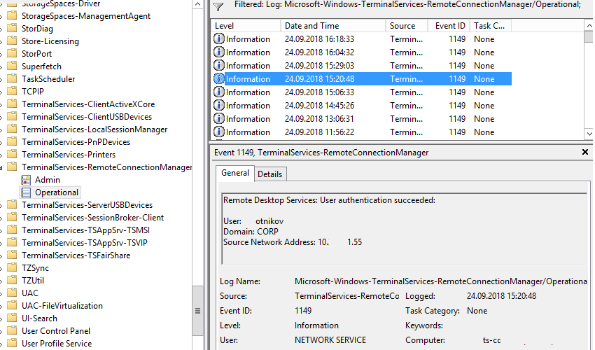 В этой статье мы рассмотрим, особенности аудита / анализа логов RDP подключений в Windows. Как правило, описанные методы могут пригодиться при расследовании различных инцидентов на терминальных / RDS серверах Windows, когда от системного администратора требуется предоставить информацию: какие пользователи входили на RDS сервер, когда авторизовался и завершил сеанс конкретный пользователь, откуда / с какого устройства (имя или IP адрес) подключался RDP-пользователь. Я думаю, эта информация будет полезна как для администраторов корпоративных RDS ферм, так и владельцам RDP серверов в интернете (Windows VPS как оказалось довольно популярны).