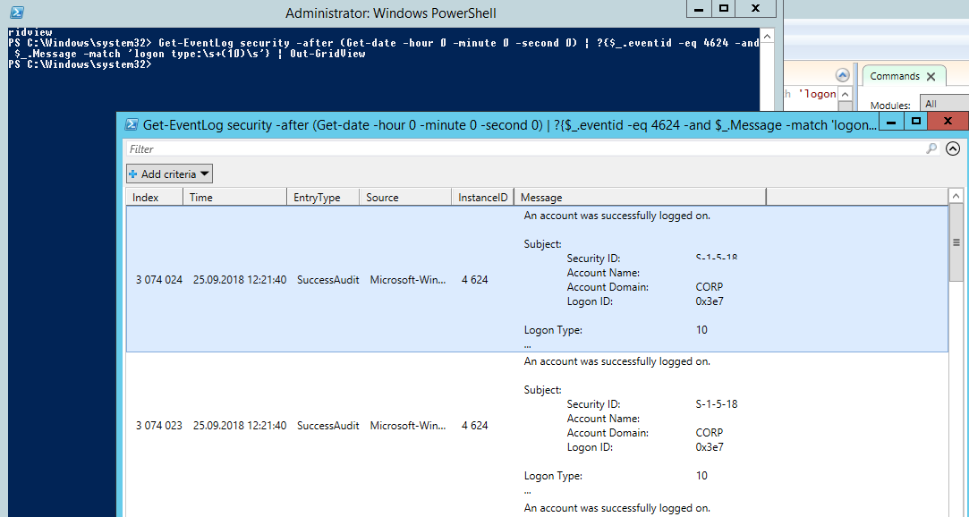 Собрать хэш-таблицу с несколькими значениями важности одной командой так просто не получится. Если мы хотим получить ошибки и предупреждения из системного журнала, можно воспользоваться дополнительной фильтрацией при помощи Where-Object:. Ошибки и предупреждения журнала System
