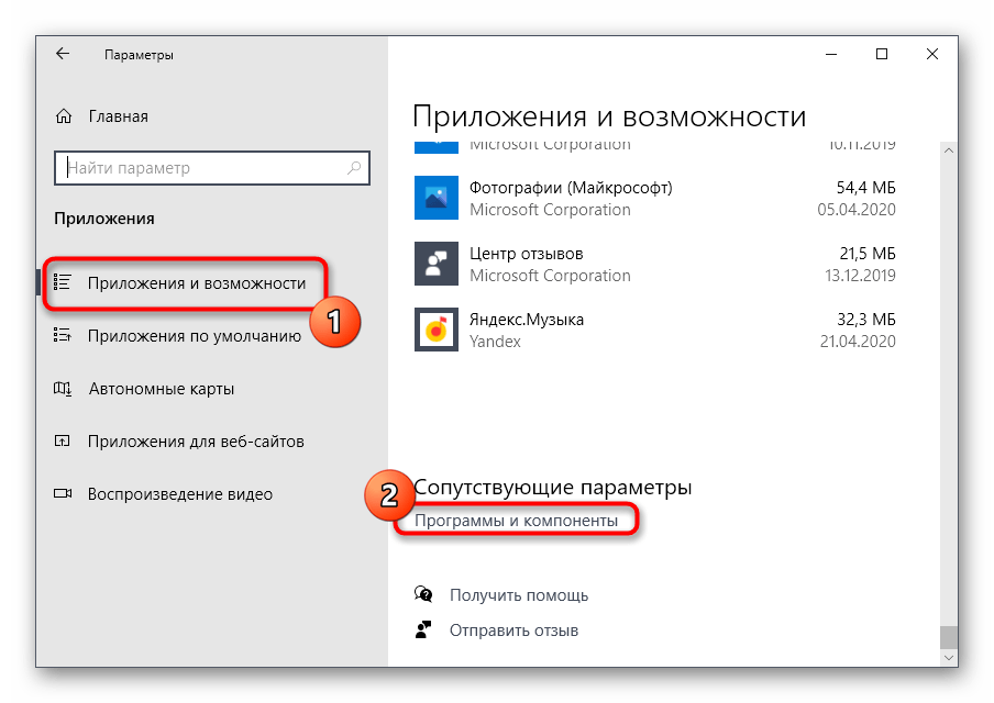 В категории «Приложения и возможности» опуститесь в самый низ, где щелкните по кликабельной надписи «Программы и компоненты».
