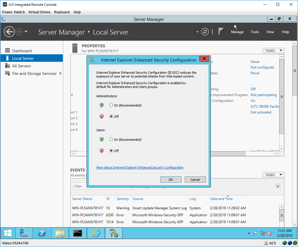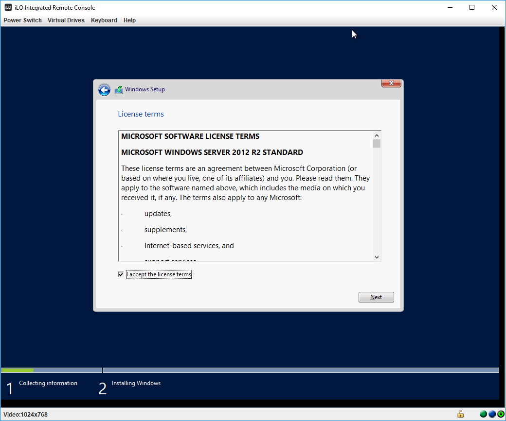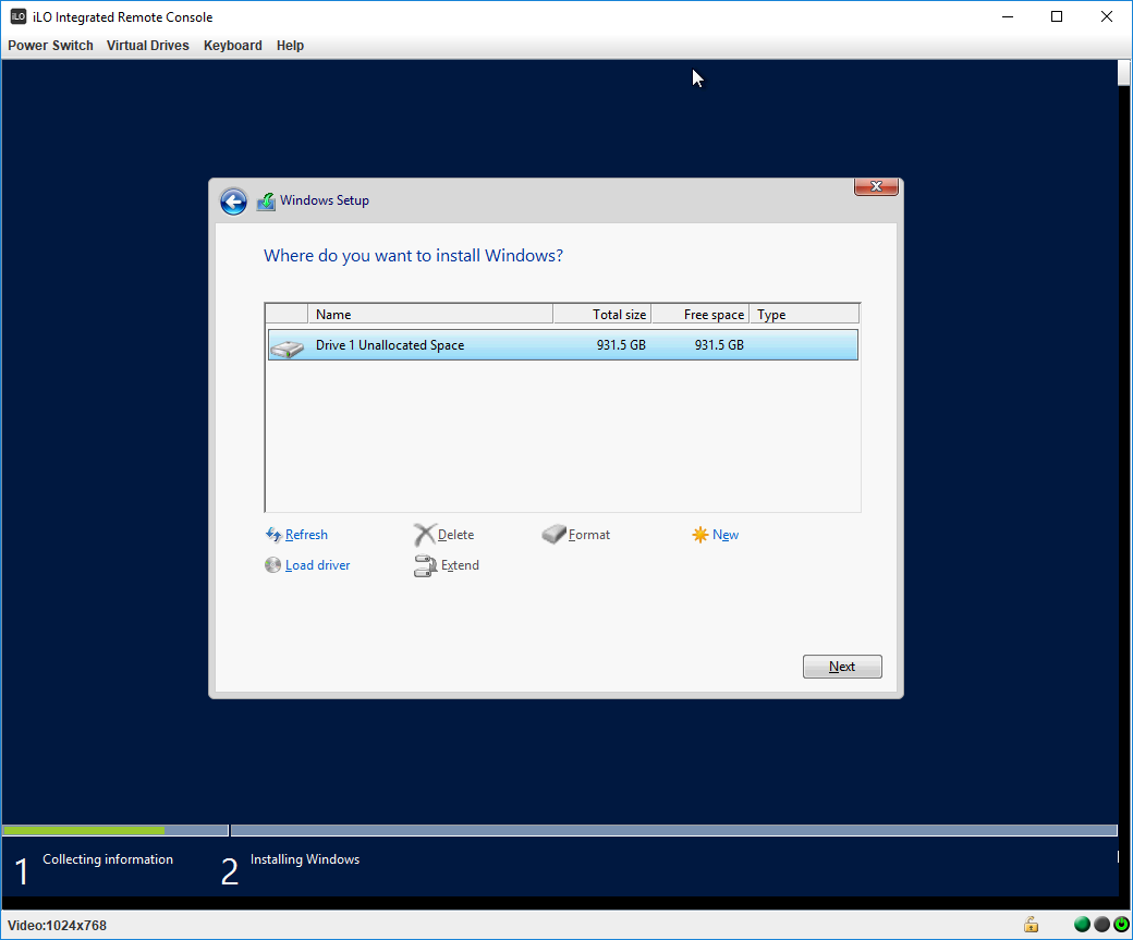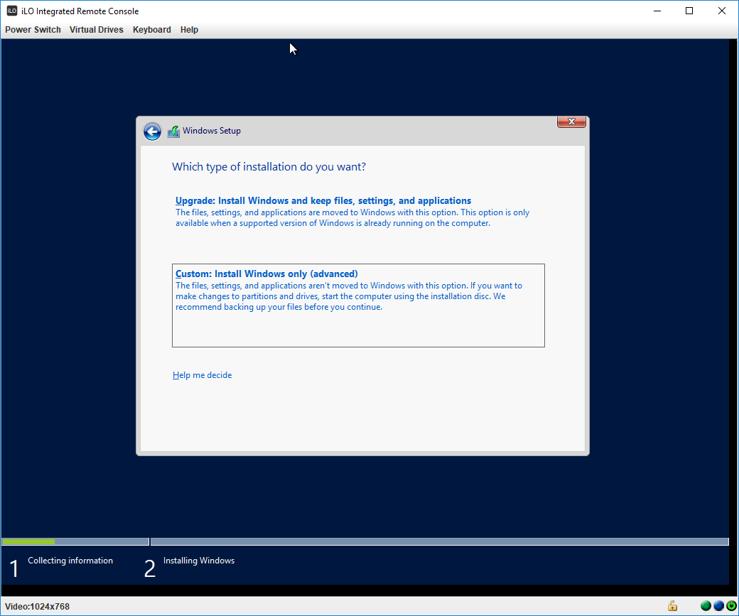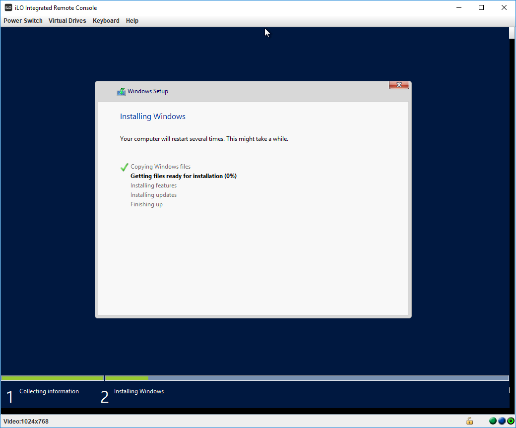 Запускаем сервер, через iLO 5 заходим в KVM, будем использовать java версию, удобнее делать скриншоты. Загружаемся с установочного образа Windows.