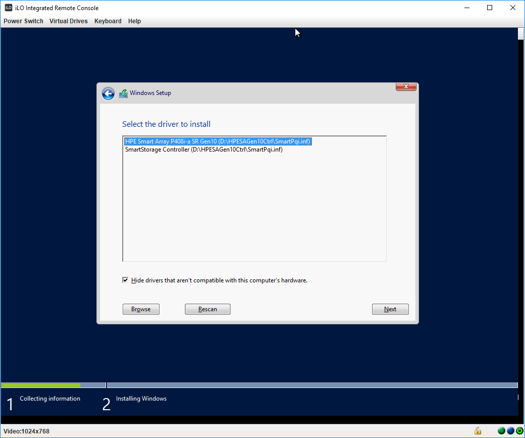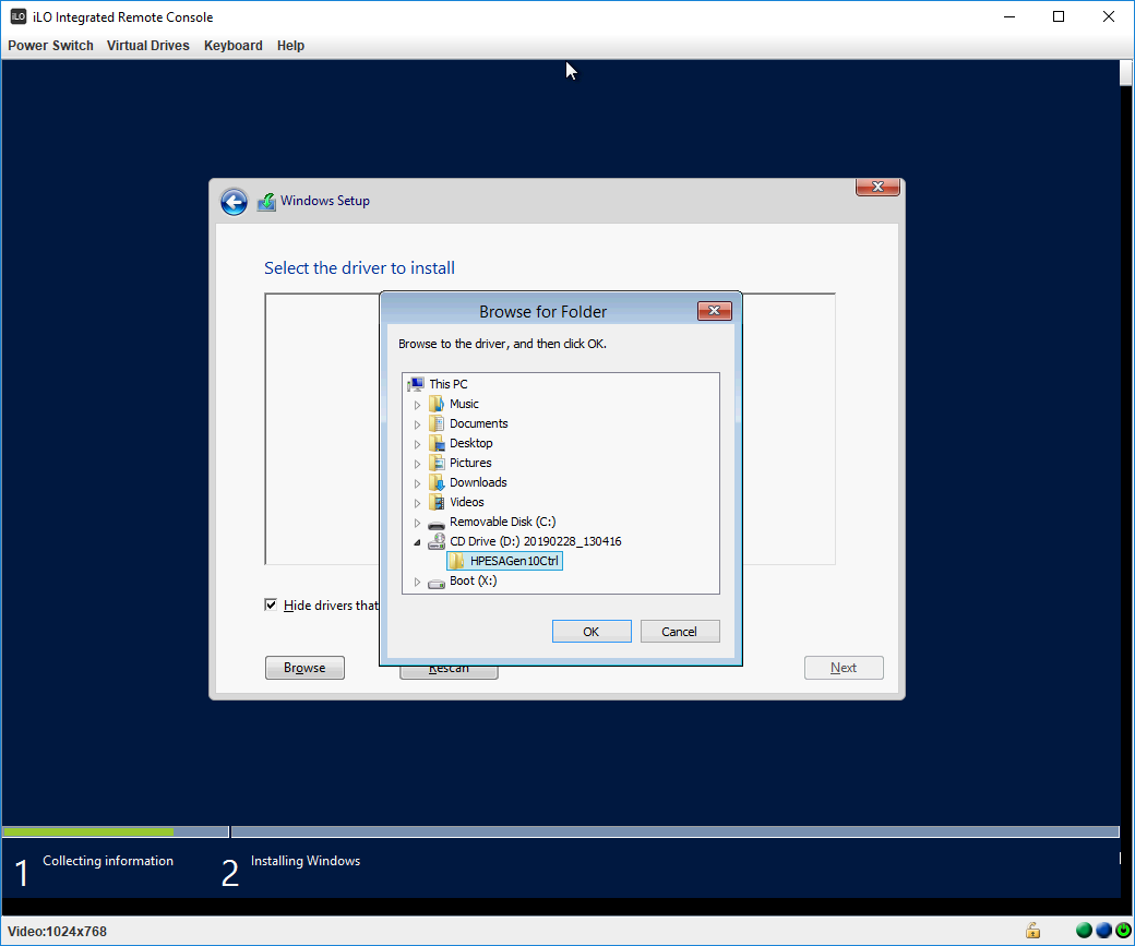 Browse. Лезем внутрь смонтированного диска и выбираем папку HPESAGen10Ctrl.