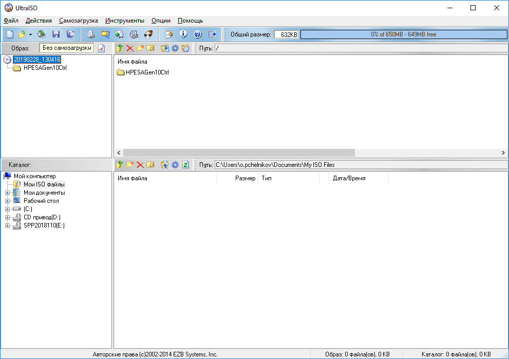 Перетаскиваем туда папку HPESAGen10Ctrl. Сохраняем куда-нибудь проект как ISO образ.