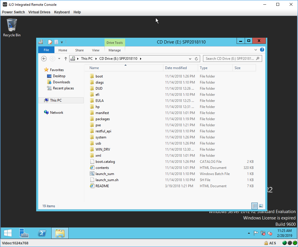 Подумав что не лишним будет так же обновить все firmware на элементах сервера, я скачал с HP.com свежий диск SPP (Service Pack for Proliant 2012.10) и подключив образ через вьювер iLO запустил обновление всей firmware. Все прошло успешно, сервер перезагрузился. Перемонтировав образ с Windows Server 2012 я с удивлением обнаружил что сервер более не видит Virtual CD/DVD. Попробовав другие загрузочные образы, с целью исключить возможную корявость образа с Windows, я понял что дело не в образе, а просто iLO перестало подключать виртуальный CD к серверу. В поисках причины я начал сравнивать версии firmware с другими серверами в шасси и обнаружил что версия iLO обновилась с 1.28 до 1.50. Скачав с сайта старую версию и сделав iLO downgrade я восстановил функциональность загрузки с Virtual Media.