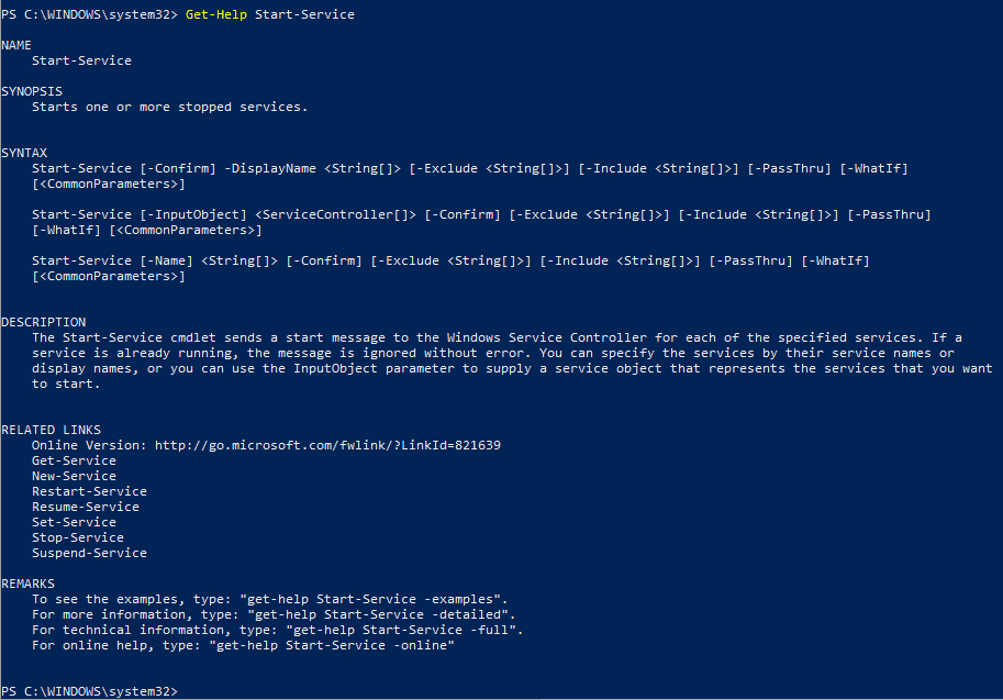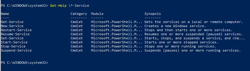 Существует восемь основных командлетов Service, предназначенных для просмотра состояния и управления службами Windows.