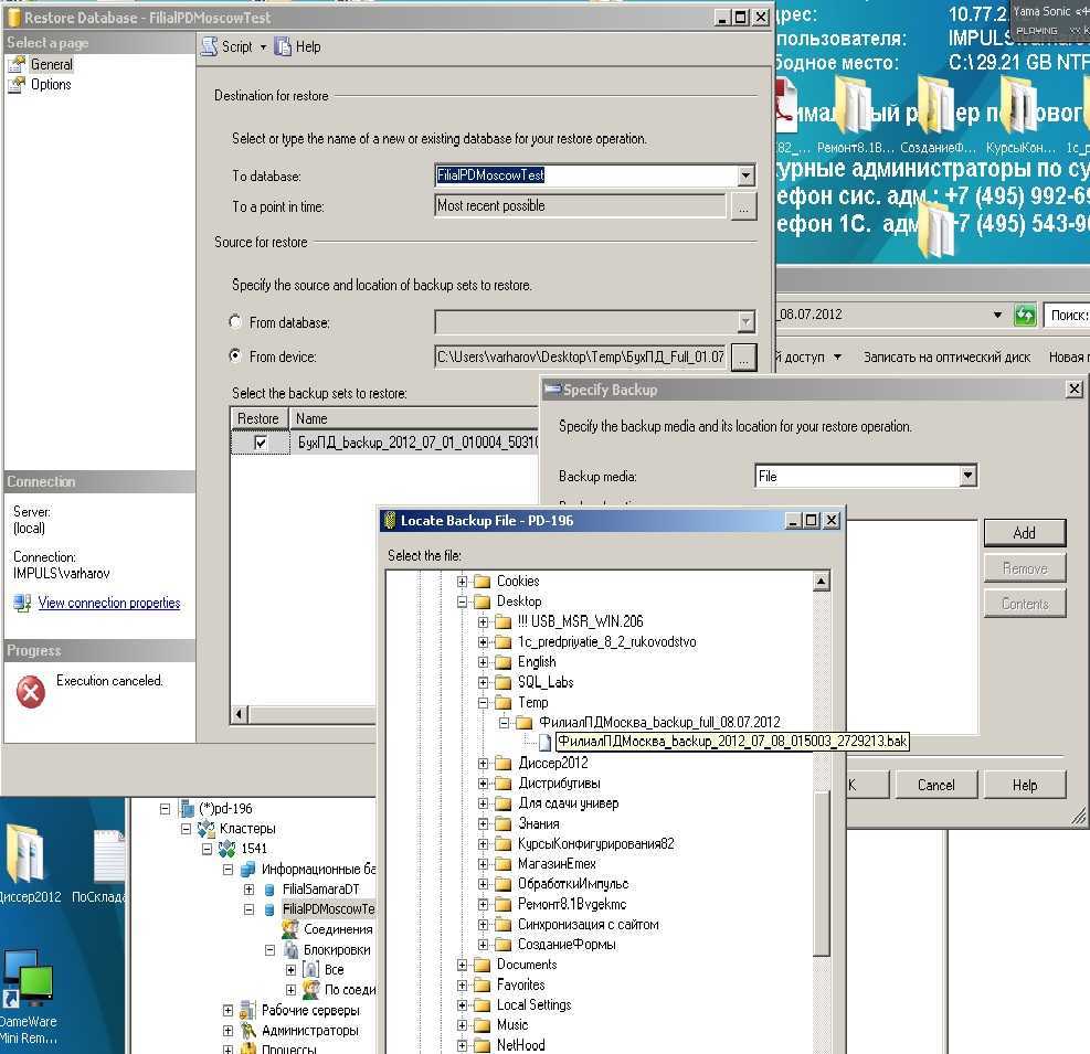 Пошаговая инструкция по процедуре восстановления базы SQL. SQL Server 2008