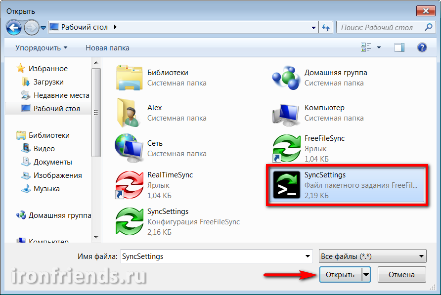 Выберите файл пакетного задания, созданный в программе FreeFileSync.