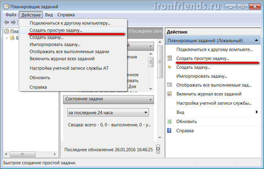 Выберите «Создать простую задачу».