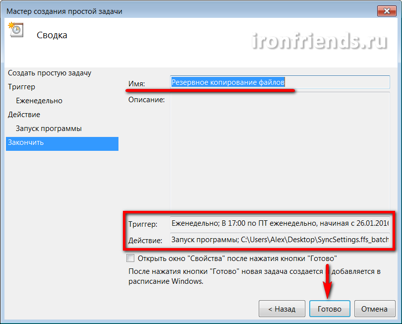 Теперь резервное копирование файлов будет выполняться чётко в назначенный день и время. Если компьютер в это время окажется выключен, то задание будет выполнено при следующем его включении. Позаботьтесь только о том, чтобы носитель резервных копий был доступен в нужное время.