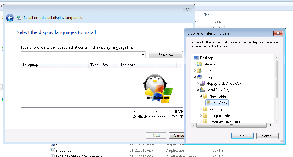 Укажите, что надо установить новый языковой пакет