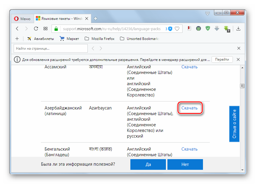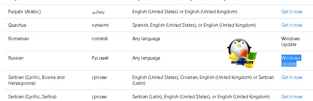 Скачайте языковый пакет с официального сайта Microsoft или выполните перенос его на компьютер другим способом, например, при помощи флэшки. Стоит отметить, что на веб-ресурсе Майкрософт представлены только те варианты, которых нет в «Центре обновлений»