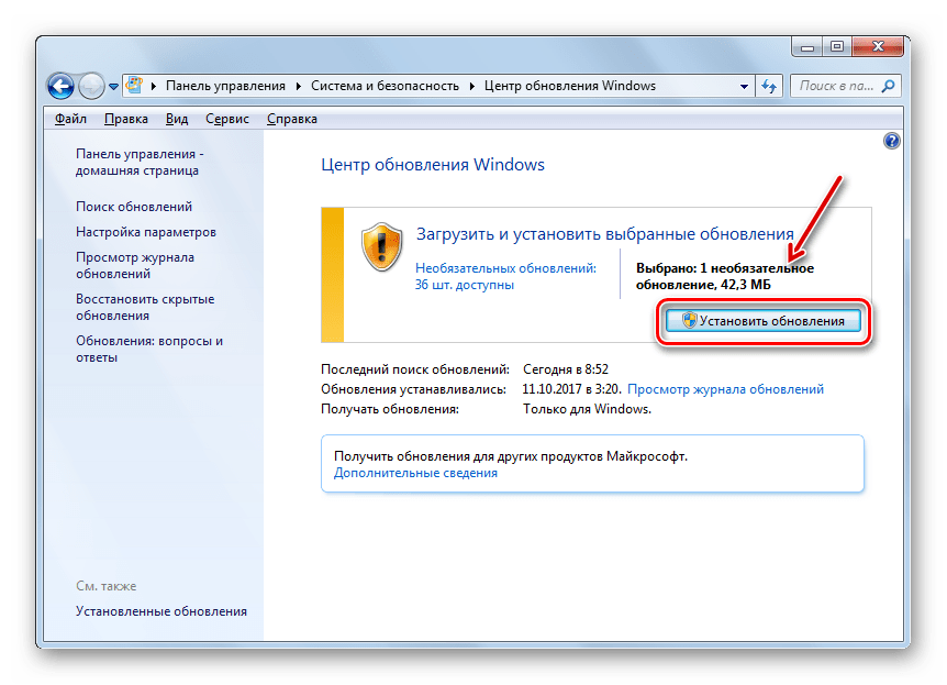 Способ 1: Загрузка через «Центр обновления»