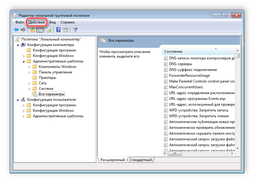 Например, в разделе «Административные шаблоны», в любой конфигурации, находятся политики, которые никак не связаны с безопасностью. В этой папке находится еще несколько папок с определенными настройками, однако можно включить полное отображение всех параметров, для этого нужно нажать на ветвь и выбрать пункт в правой части редактора «Все параметры», что приведет к открытию всех политик данной ветви.
