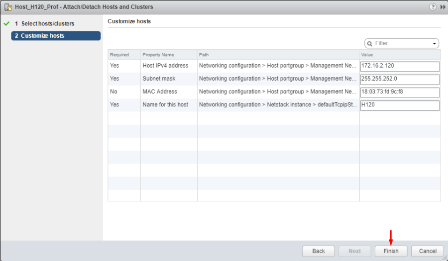 Right after adding the host, you can play around with the network settings, if you need it. Well, you can just click Finish