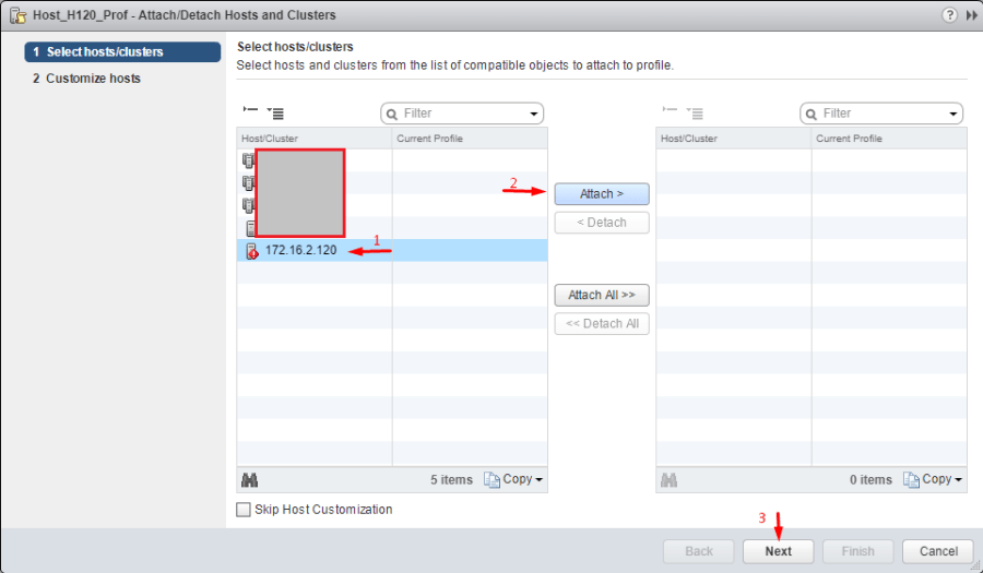 In the Attach/Detach Hosts and Clusters