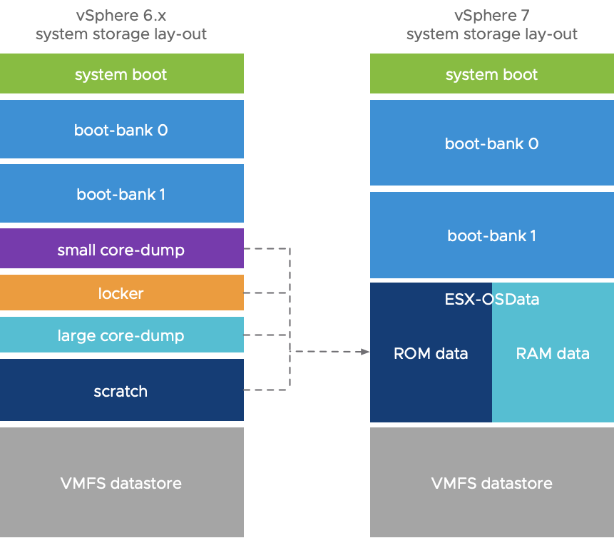 vSphere 6.x vs vSphere 7 partitions layout