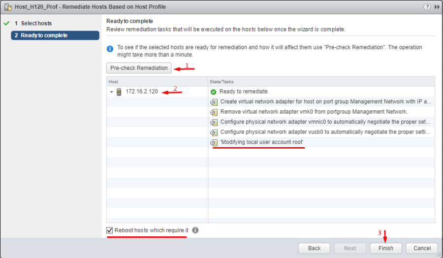 Now, go back to the Objects tab and, finally, implement the host settings. Right-click the Host Profile and press Remediate