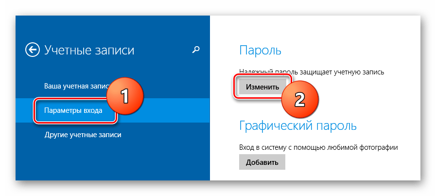 Теперь перейдите во вкладку «Параметры входа» и в пункте «Пароль» нажмите на кнопку «Изменить».