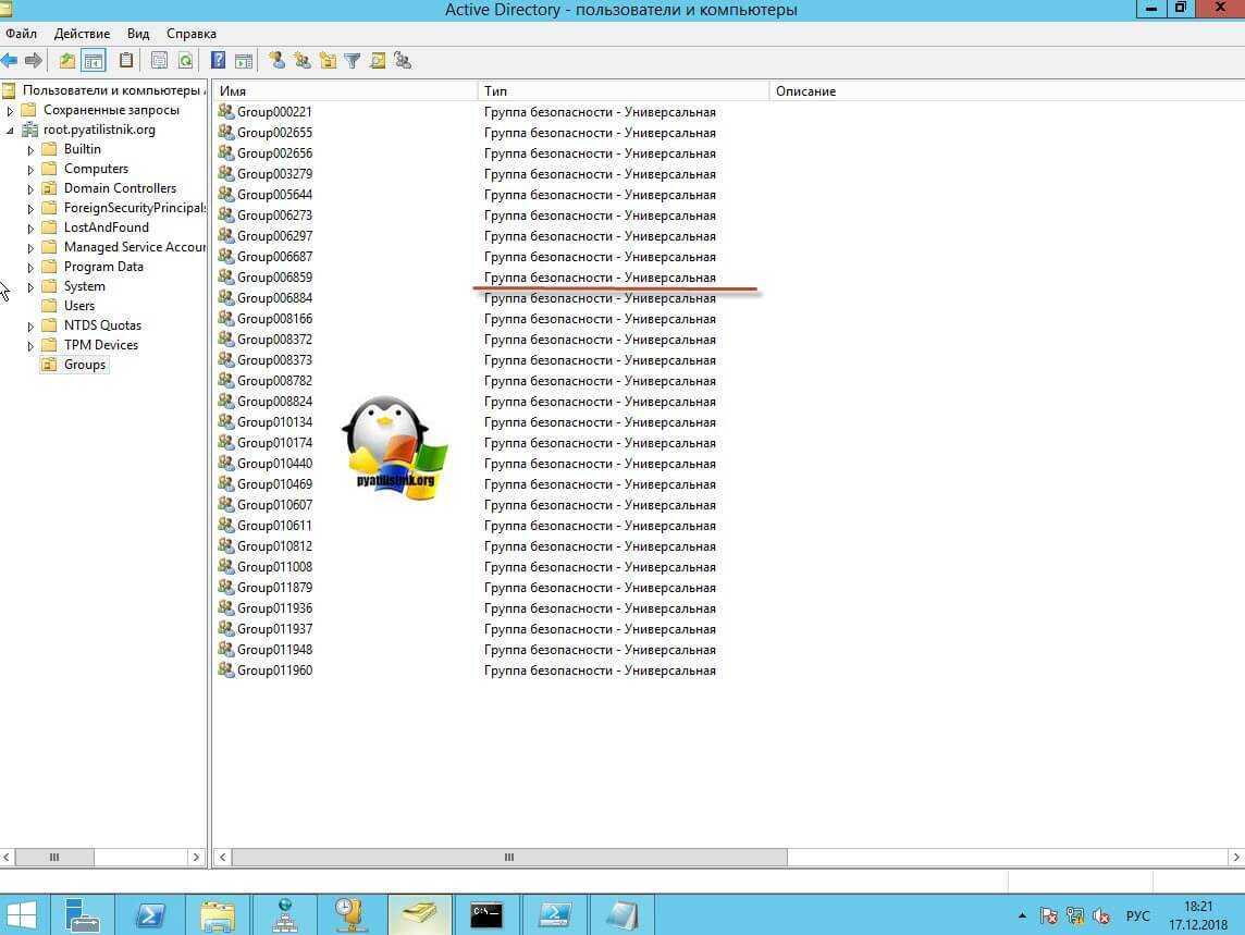 Создание групп при помощи оснастки «Active Directory – пользователи и компьютеры»