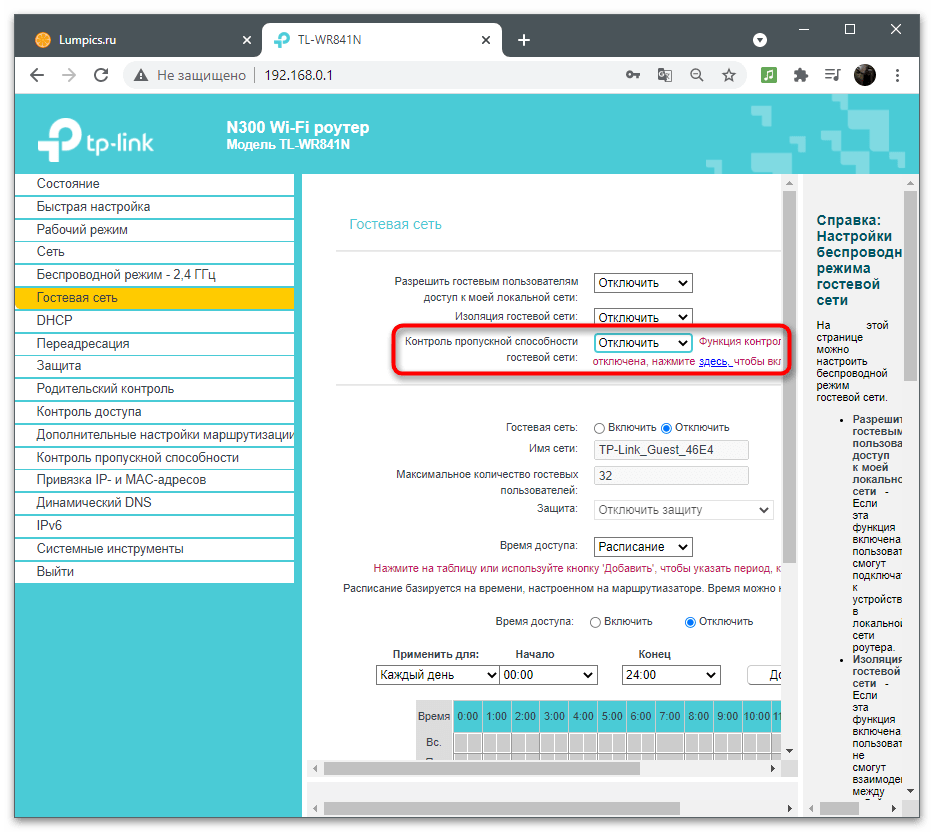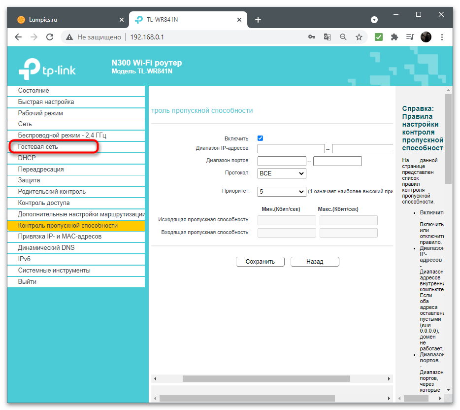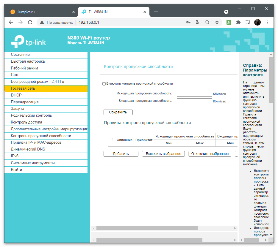 Обязательно активируйте контроль пропускной способности гостевой сети и приступите к настройке ограничений.