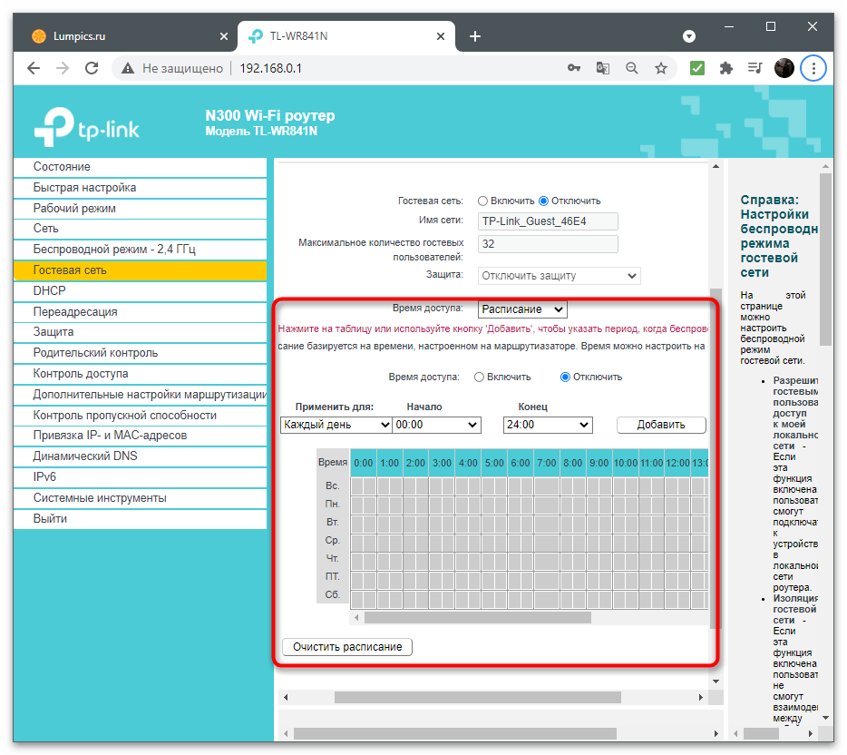 Если время доступа регулируется расписанием, настройте его, отталкиваясь от собственных потребностей.