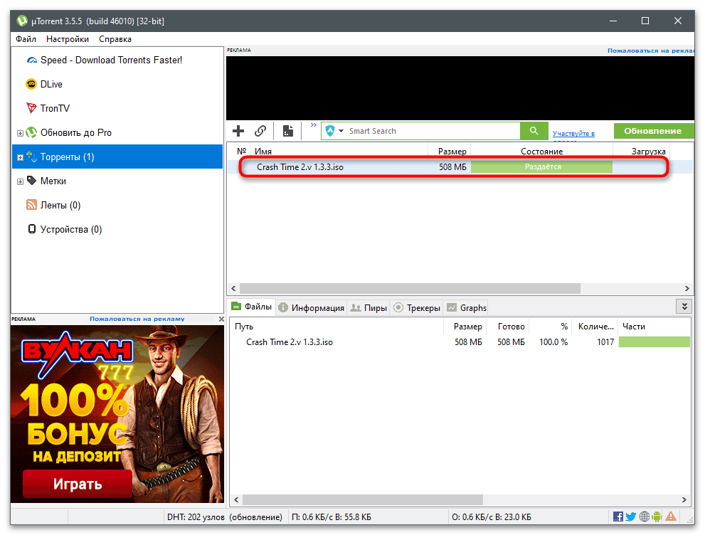 Если в торрент-клиенте запущен загрузчик, скорость работы браузера будет гораздо ниже привычной. Чтобы исправить ситуацию, имеет смысл удалить ненужные файлы, поставив на паузу все остальные загрузки.