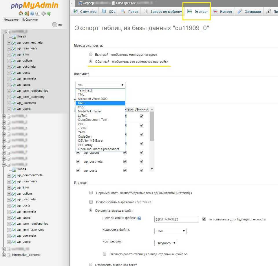 - Нажмите кнопку Перейти, чтобы экспортировать резервную копию, выполнить команды SQL и повторно создать базу данных.