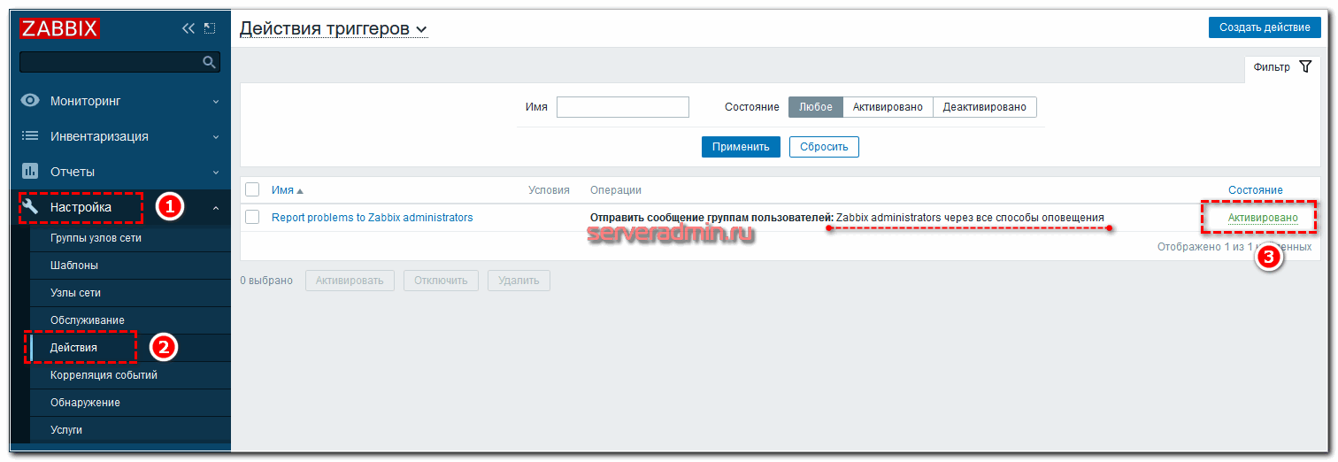 Если у вас ранее не работали никакие уведомления, то не забудьте активировать Действия.