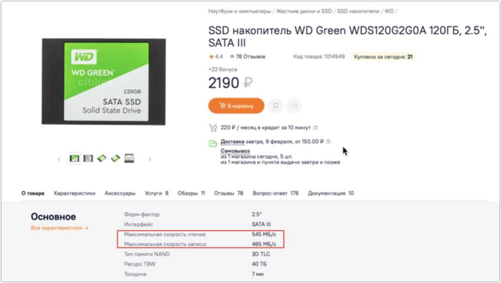 Как показывают тесты, при подключении к SATA 2 падает и это значение…