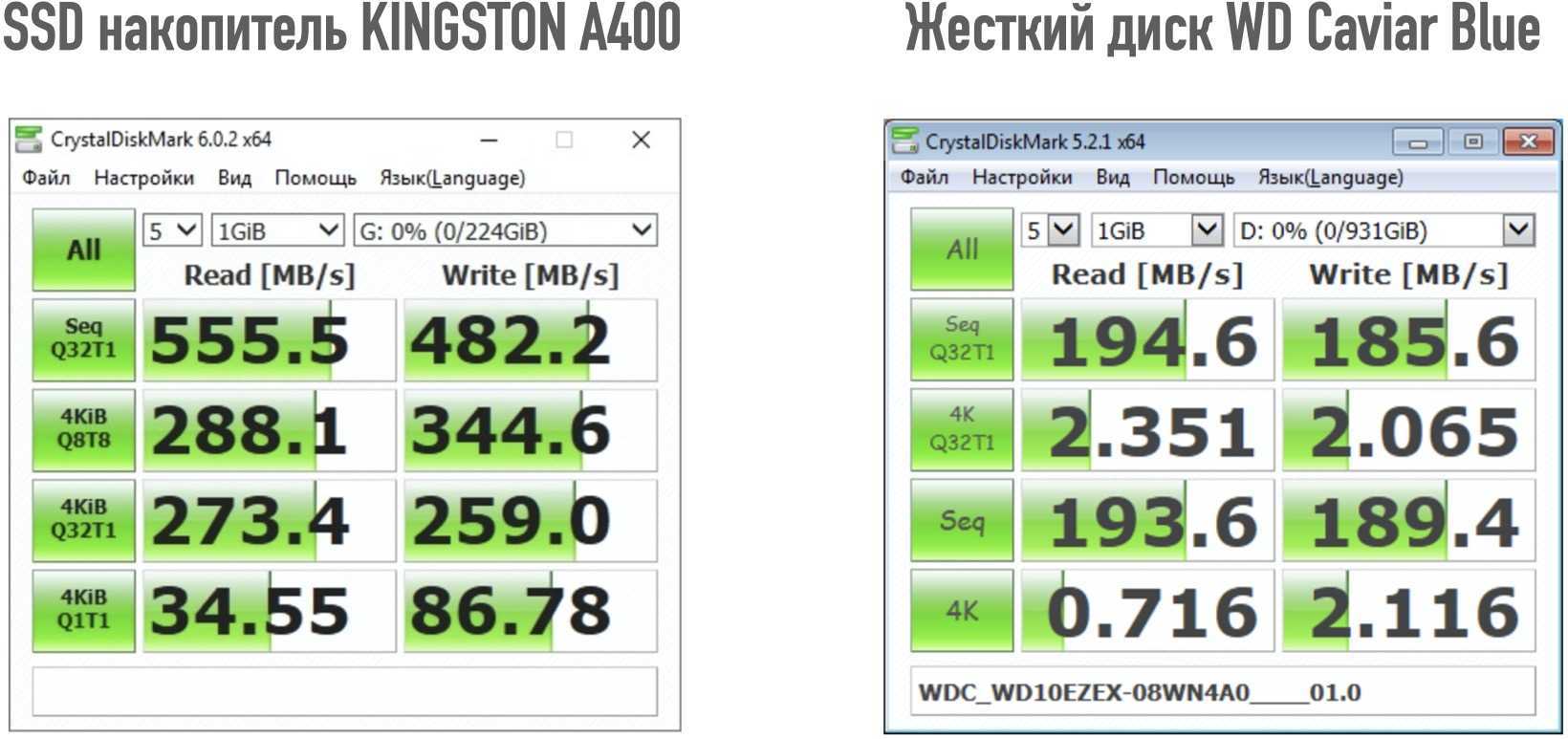 Очевидно, что производительность SSD в рядовых файловых операциях в разы выше, нежели жестких дисков.