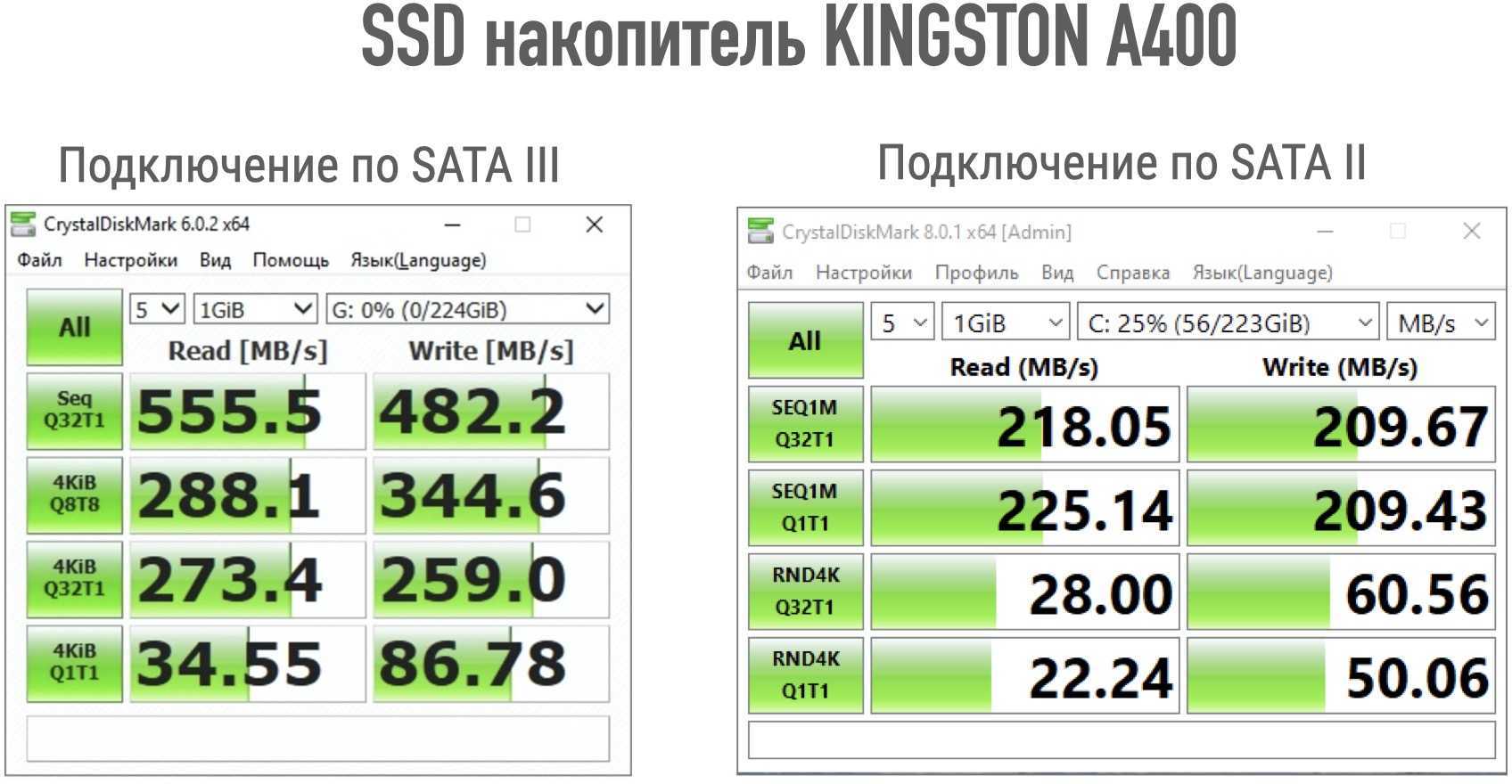 Но следует учитывать, что большинство таких тестов проводились при оптимальном подключении, то есть SSD был подключен через интерфейс SATA 3.