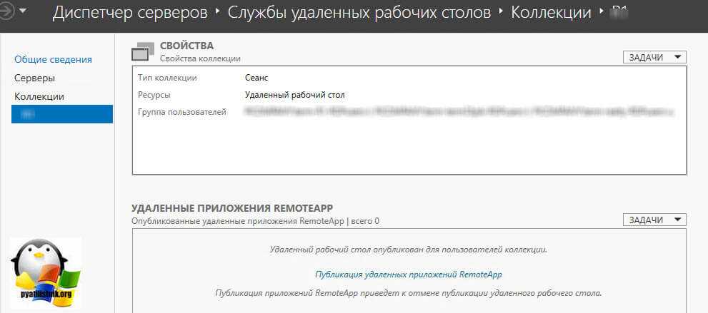 Переходите к своей коллекции серверов. Нас с вами будет интересовать верхняя часть, со свойствами коллекции RDS фермы.