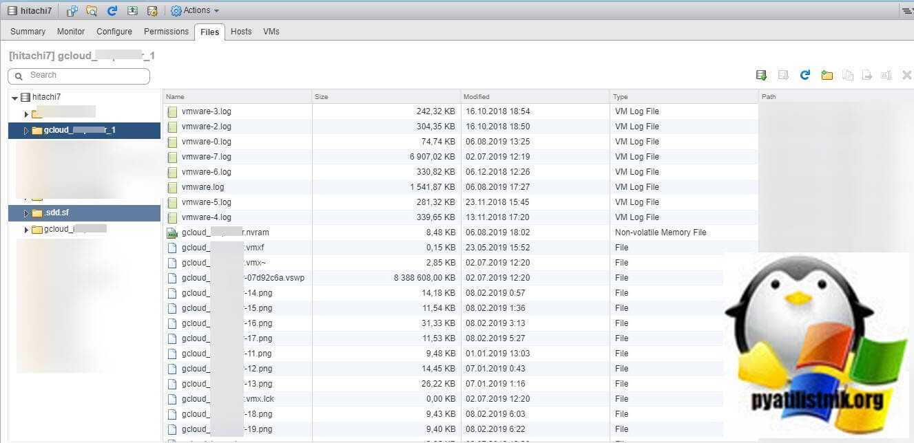 Открыв свой датастор я увидел, что у меня виртуальная машина имеет две папки, первая имеет просто название виртуальной машины, а вторая добавляет в название _1.
