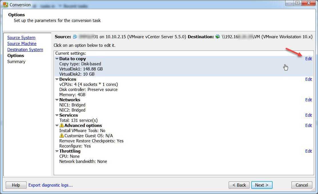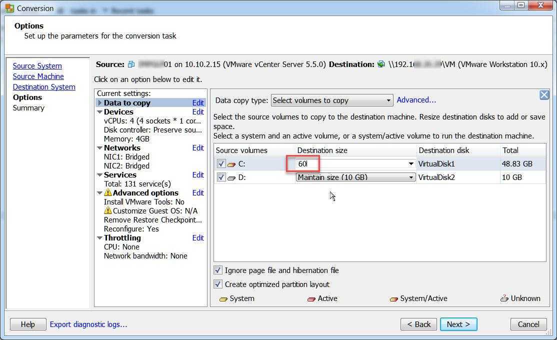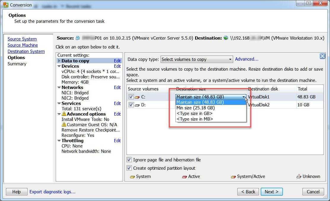 Уменьшение размера виртуального диска через конвертирование с помощью VMware vCenter Converter Standalone