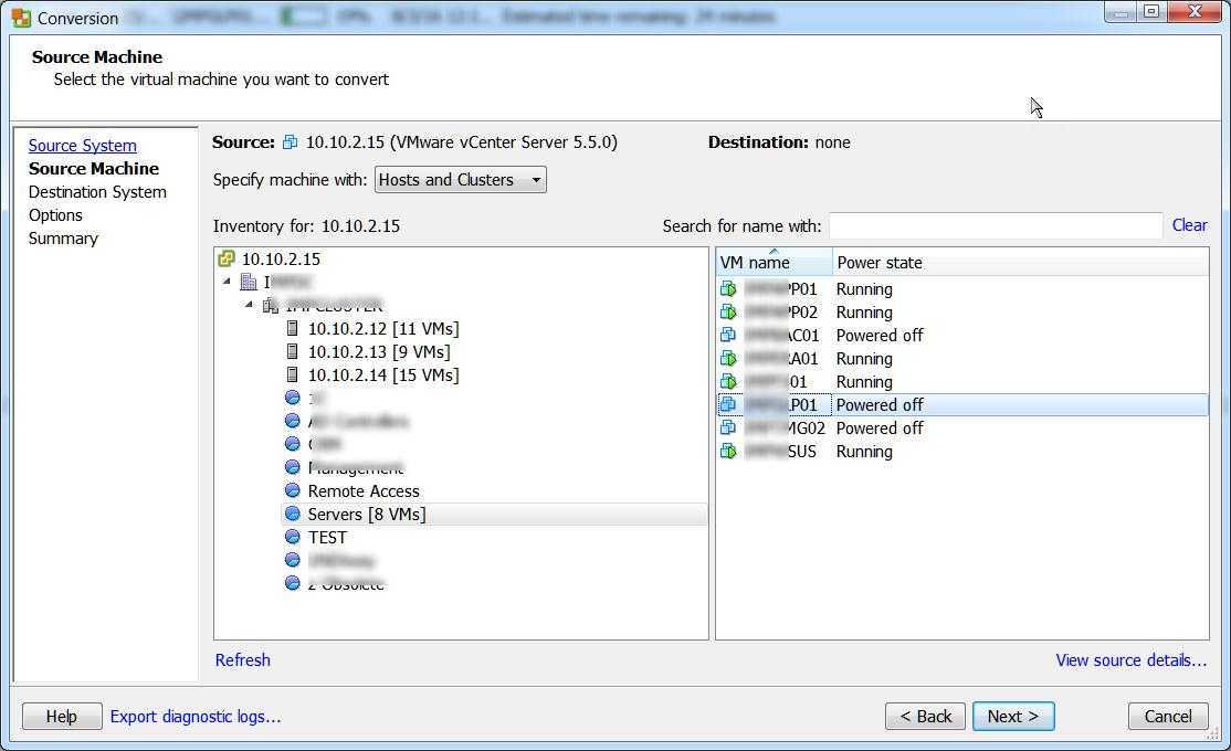 - Once we run the VM conversion process, we can power off the source VM and power on the new one.
