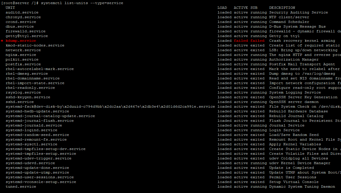 Следующая команда выведет список юнитов, которые загрузил или пытался загрузить systemd. Так как после запуска некоторые юниты могут стать неактивными, с помощью флага —all вы получите полный список.