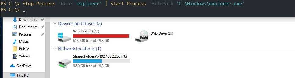 Мы можем перезапустить процесс средствами Powershell. Выполнение этой команды, как минимум, закроет все открытые окна: