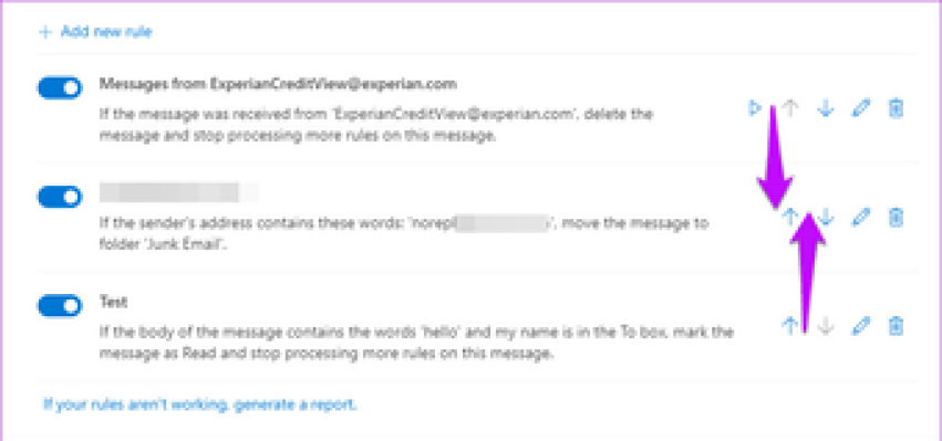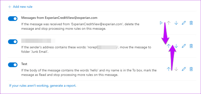 - Выберите правило и используйте стрелки для перемещения правила вверх или вниз по списку.