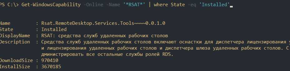 В отличие от предыдущей команды — эта программа может устанавливать компоненты из Windows Update. Поэтому в ней можно увидеть значения ‘DownloadSize’ и ‘InstallSize’. В остальном это одинаковые команды.
