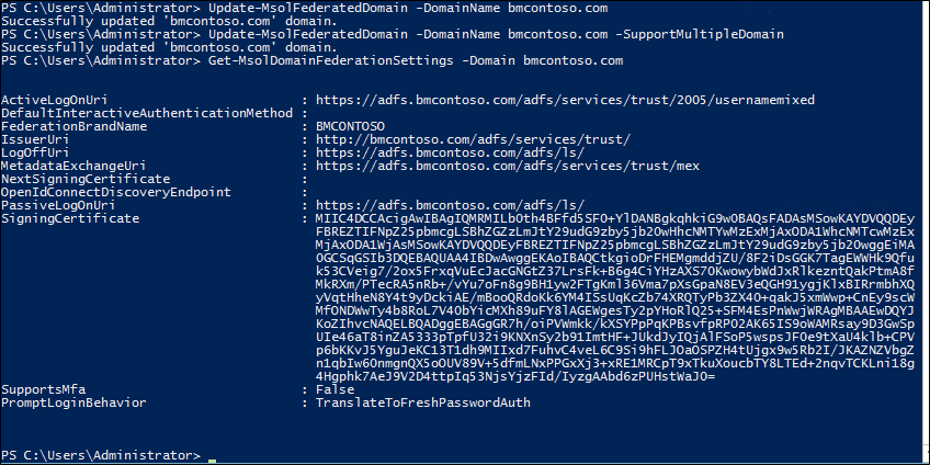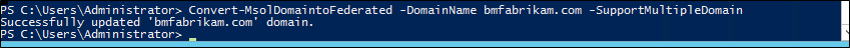 Чтобы использовать параметр -SupportMultipleDomain при попытке добавить новые или преобразовать существующие домены, необходимо заранее настроить федеративное отношение доверия для этих доменов.