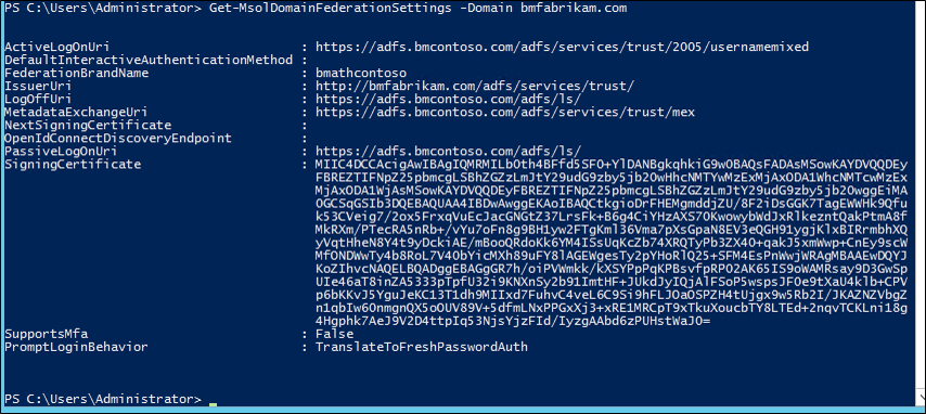 Пр попытке преобразовать домен bmfabrikam.com в федеративный домен происходит ошибка. Причина в том, что в Azure AD существует ограничение, при котором свойство IssuerUri не может иметь одно и то же значение для нескольких доменов.