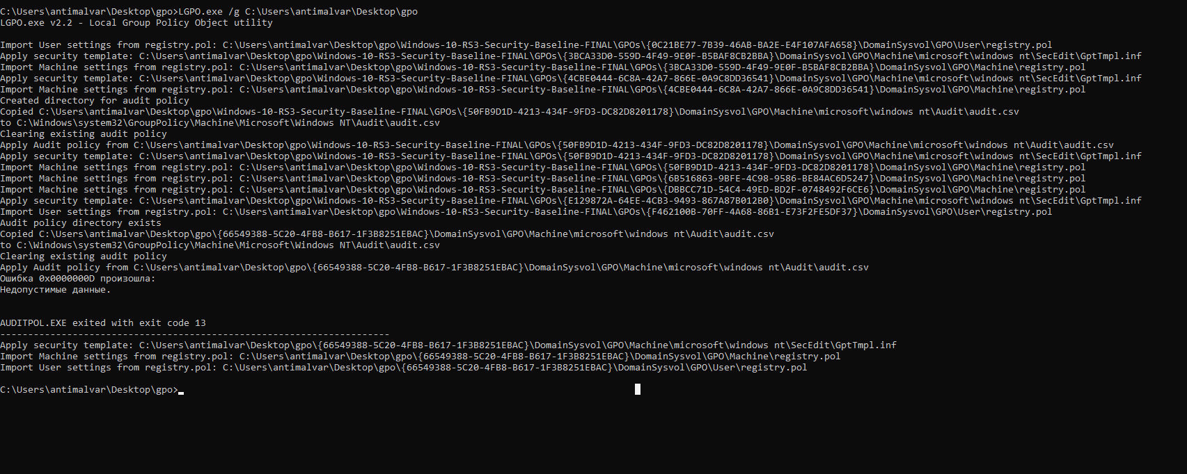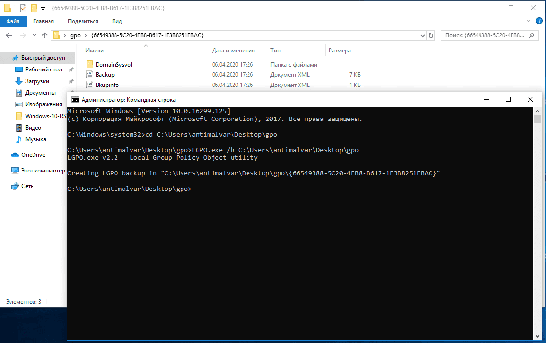 Рисунок 2. Резервное копирование политик посредством LGPO.exe